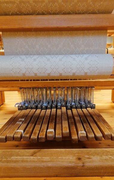 Vi har 9 vävstolar bland annat en damastvävstol med drag/harneskutrustning.